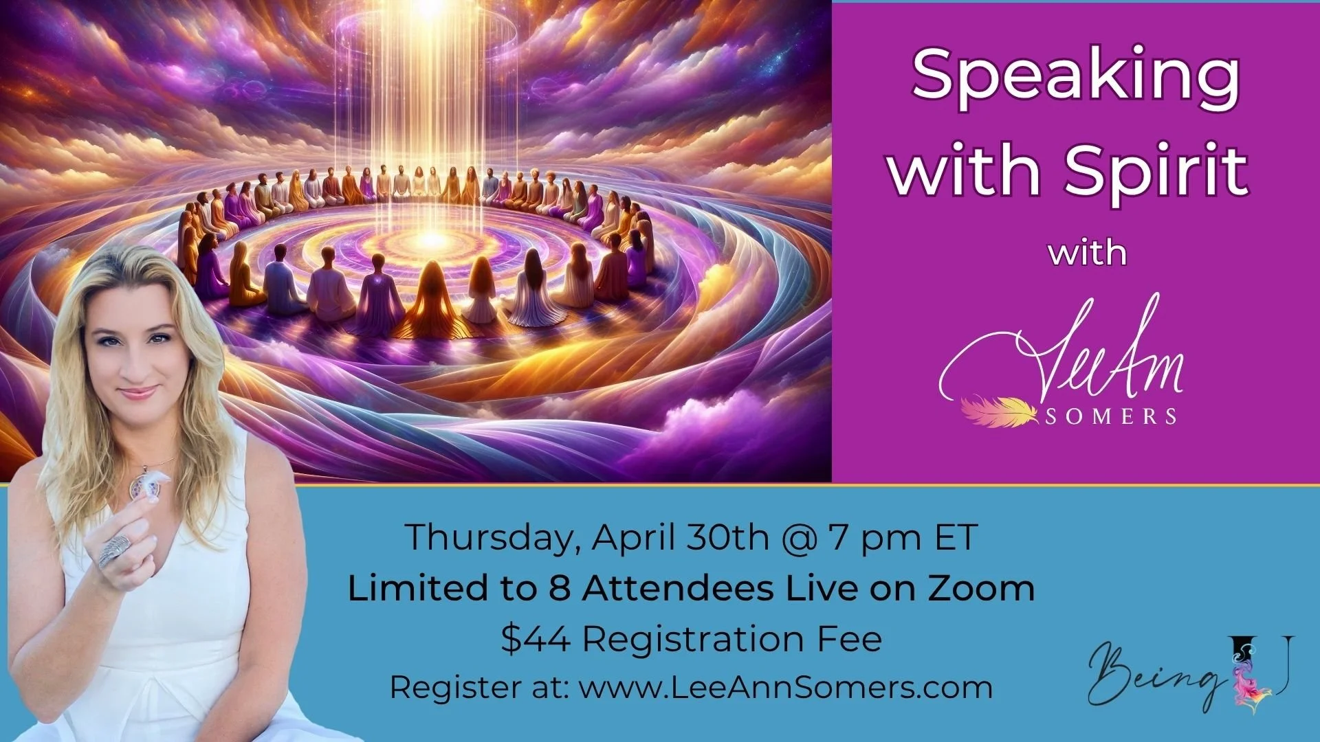Speaking with Spirit this month will be held Live on Zoom on Thursday, April 30th at 7 pm ET.