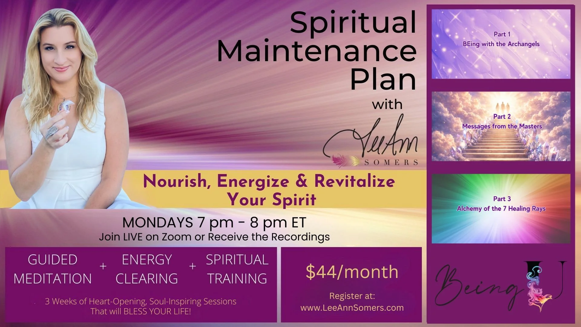 Let the EXPANSION INTO BELONGING begin with SMP – our BEING U Spiritual Maintenance Plan, three installments of soul satisfying, heart filling, peace inducing meditation and messages from the Archangels, Ascended Masters and Teachers, and from the Alchemy of the Rays!
